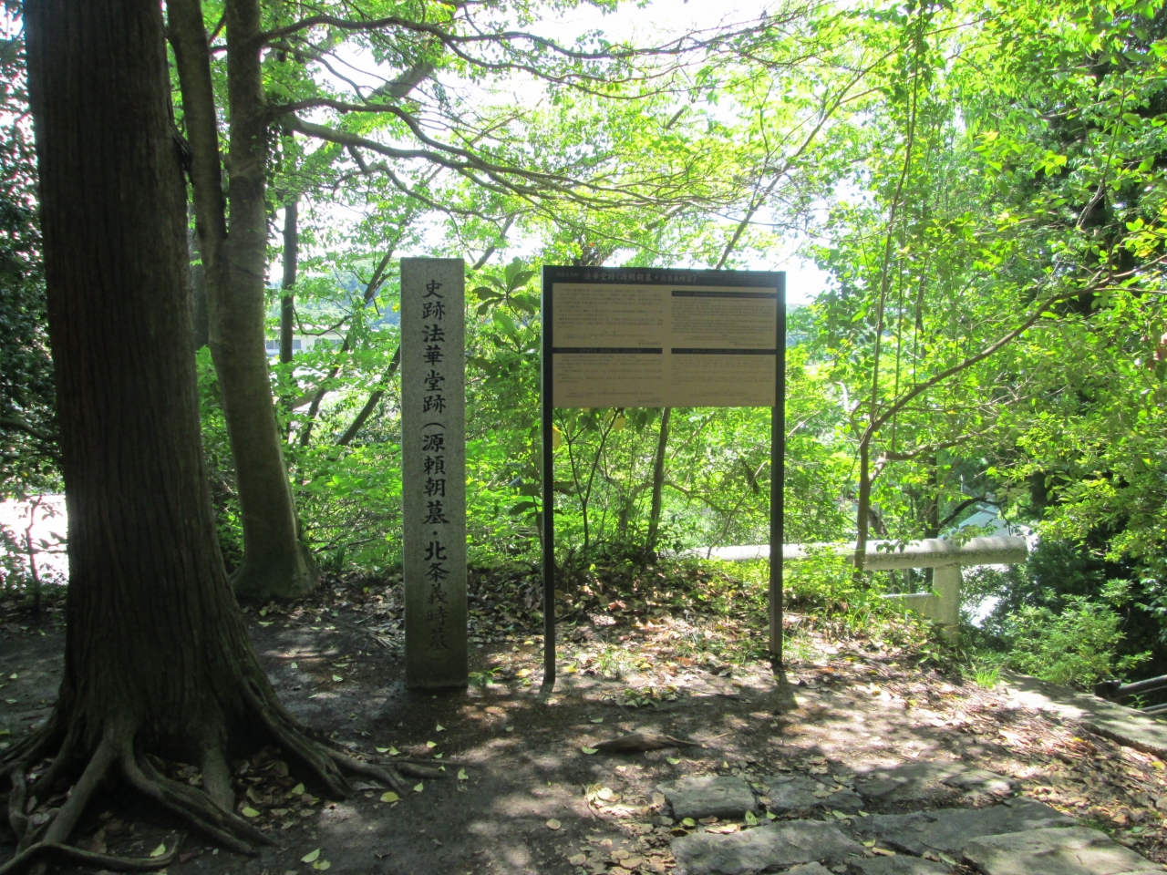 現在ある白幡神社の処に、頼朝の死後法華堂が建てられました。法華堂とは法華三昧の行を行う場所または貴族や皇族の墓所に建てられる堂のことを言います。ここでいう法華堂は後者をさします。現在頼朝の墓は白幡神社前の石段を50段ほど登ったところにあります。白幡神社から少し東に行ったところに北条義時(13人の一人)の法華堂跡(頼朝の法華堂と区別するために新法華堂とも呼ばれます)こちらは発掘調査が行われ、礎石が見つかり、10M弱四方のお堂が建っていたと思われます。跡というだけで、遺構は埋め戻され、想像はしにくいです。この辺りほかにも見るものが多くあり、それらと合わせて見るとよいと思われます