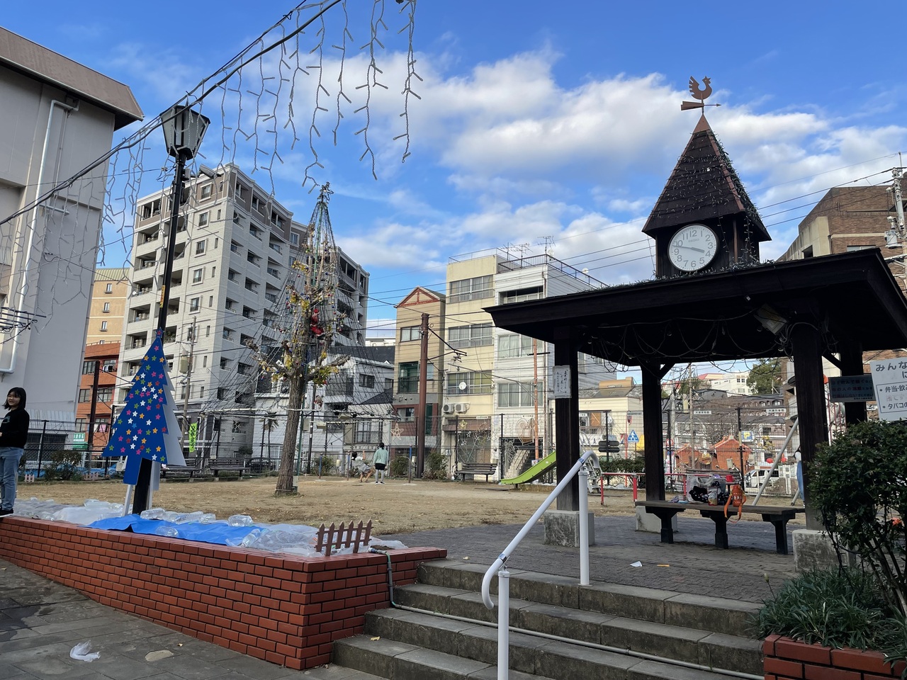 松ヶ枝の観光バス駐車場から近く、市電の大浦天主堂と石橋の間くらいにある地元の小さな公園です。地元の方々による手作りのイルミネーションで知られています。散策で通りましたが、まだ陽が高い時間帯で地元の子供たちの遊び場になっていました。