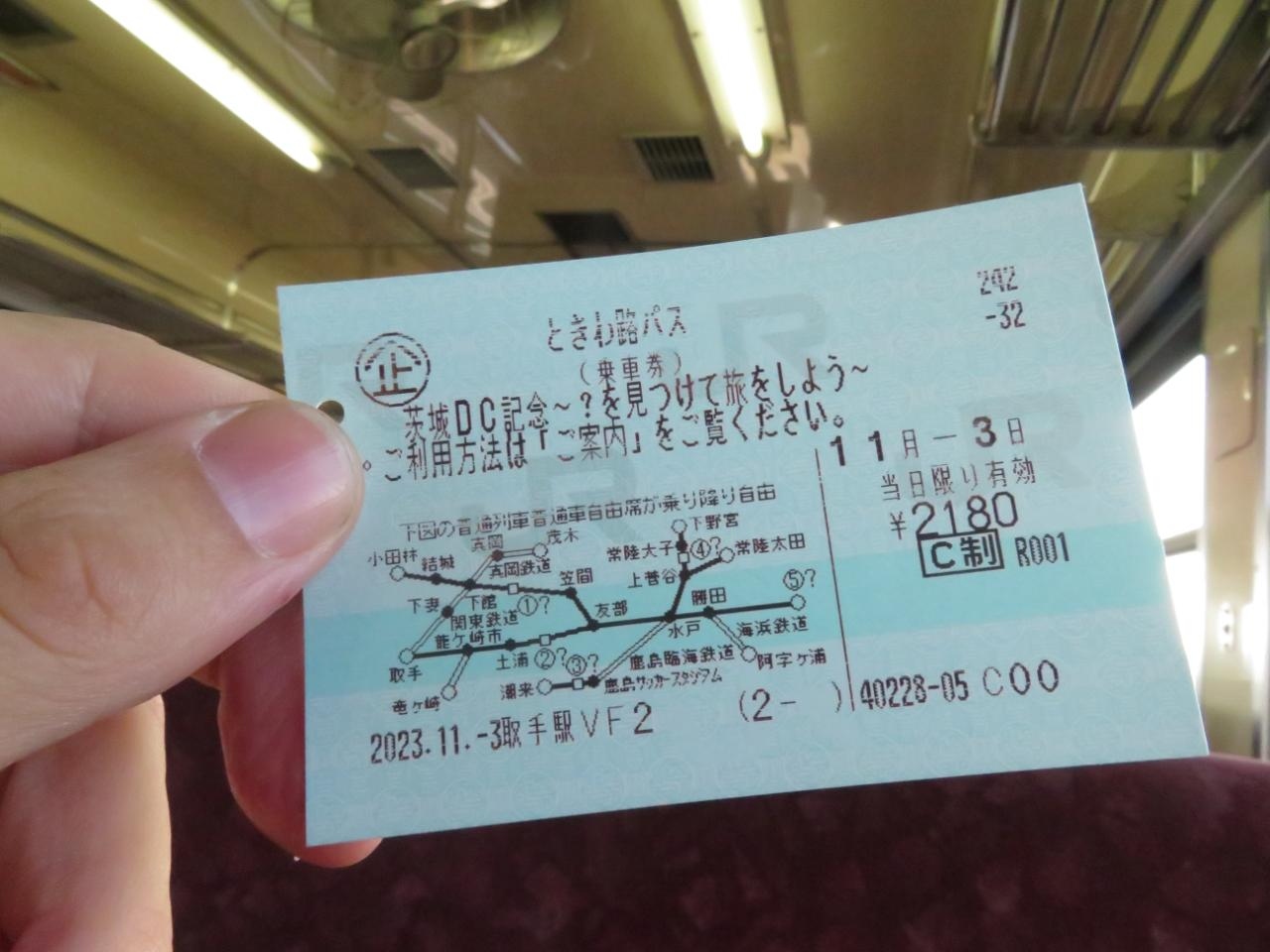 また、全区間が乗り放題に含まれる「ときわ路パス」が発売される時期があります。2180円で古河を除く茨城県内のJR各線と、関東鉄道、真岡鉄道、鹿島臨海鉄道、ひたちなか海浜鉄道全線に乗車ができ、特急券や指定券、乗車整理券、グリーン券などを買い足すと当該の列車や車両に乗れます。民鉄線内は発売せず、乗り放題区域に含まれるJRの主要駅でのみ発売していますので、「常磐線でアクセスするなら取手」など、一度ラッチを出てきっぷを調達することになります。なお、大人のみ・値段は同じなのでデジタル版も12月から出たそうですが、そちらの方は使われた方の旅行記をご参考ください。なお、週末パスでも乗れます。青春18きっぷは鹿島神宮~鹿島サッカースタジアムまで有効です。
