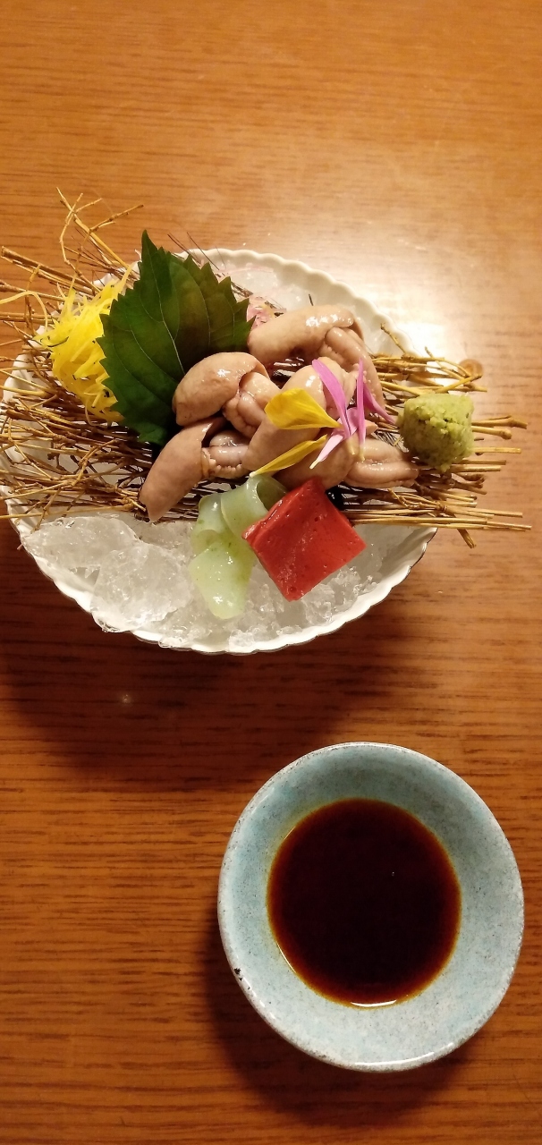 16:20分から整理券配布が始まった時点では15組待ちでしたので、早めに伺うか、入店待ち覚悟で向かうべきです。老舗感ある建物で靴を脱いで上がる畳敷きにテーブル席でした。肝料理の種類が、肝焼き/肝わさ/肝ポン酢/肝辛子酢味噌/肝煮/肝の唐揚げと豊富でした。
