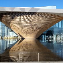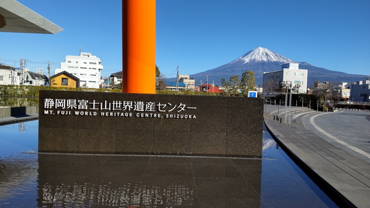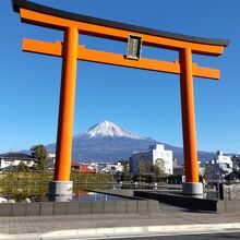 富士山世界遺産センターの前の道路から鳥居越しの富士山が撮影できます。