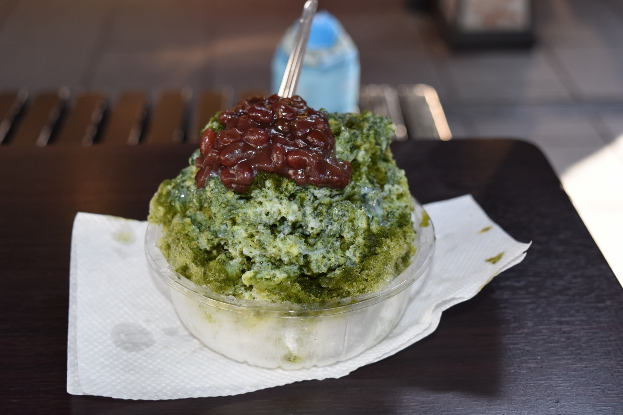 暑かったのでかき氷を食べようと入りました。メニュー写真を見ていたらほうじ茶ソフトの乗っているデラックスかき氷がとても気になったのでそれにしました。暑かったからか行列で20分近く待ったと思います。お店の中にイートインスペースはありません。