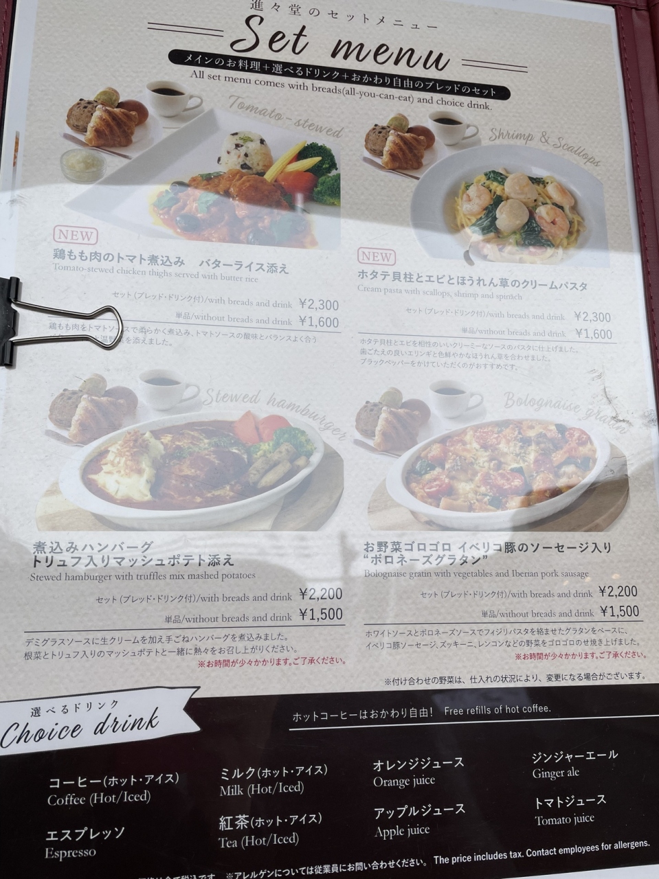 ランチメニューは殆どが飲み物とパン食べ放題付いてて、ホットコーヒーのみ、お代わりできます。
