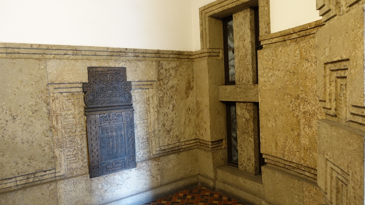 外壁を飾る南米マヤ・インカ風の意匠