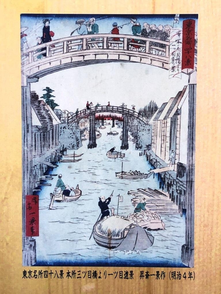 「二之橋」の歴史を遡ると、万治二年(1659年)に「竪川」が開削されると五つの橋が架けられました。隅田川に近いほうから「一之橋」から「五之橋」と名付けられました。「二之橋」は、そのニツ目の橋で、長さ十間(18m)、幅三間(5.4m)ほどあったそうです。そして、関東大震災により被災した震災復興事業橋として昭和4年(1929年)に鋼製アーチ橋として架橋され、現在の「二之橋」が架けられたのは平成10年(1998年)です。古くは江戸時代からその名は知られています。火付盗賊改「長谷川平蔵」が活躍する「池波正太郎」の人気時代小説「鬼平犯科帳」には、「二つ目橋」という名前でたびたび登場します。