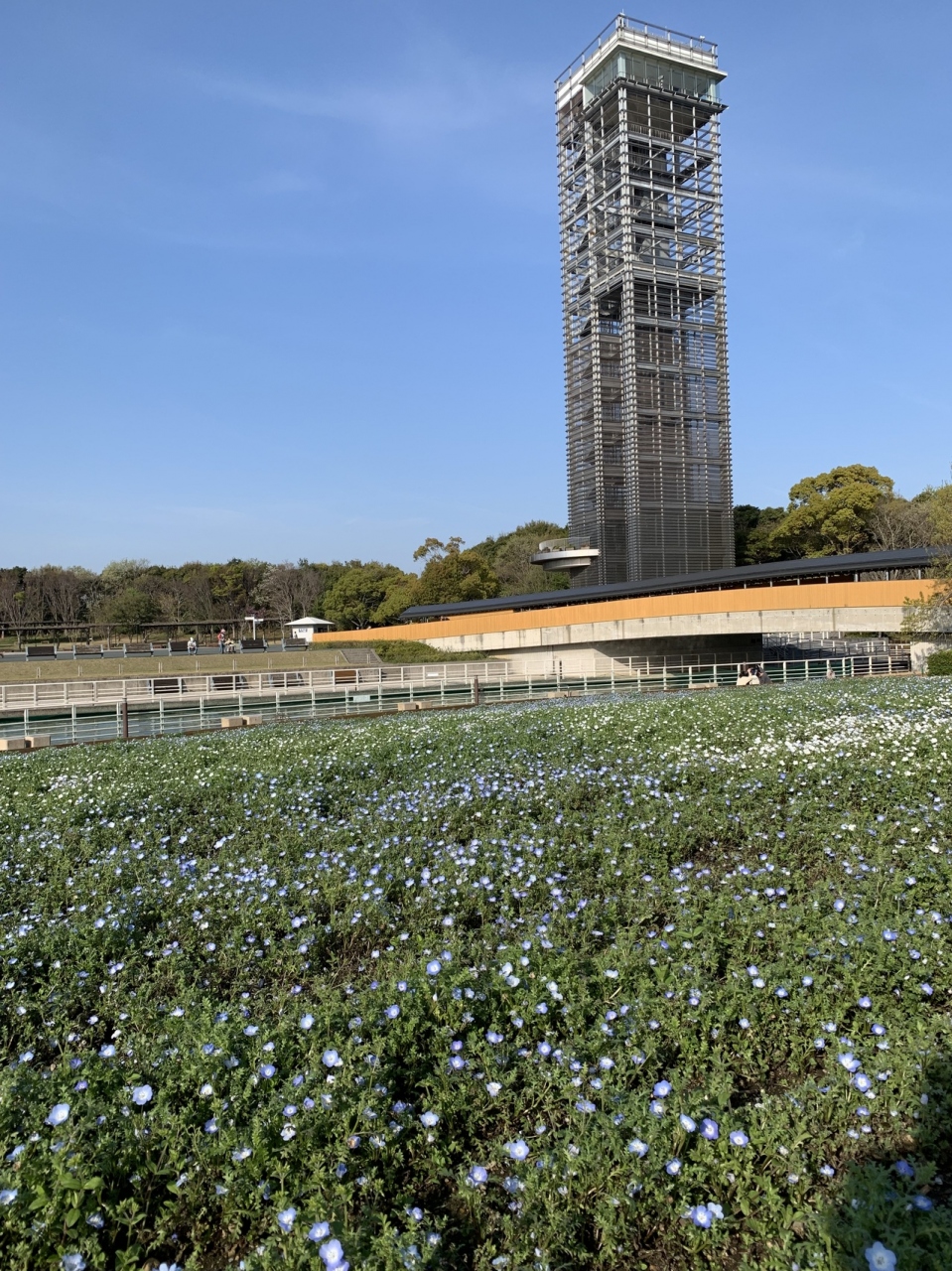 かなり広大なエリアにネモフィラが植えられていましたけど、3月末だったのでまだ見頃ではなかったです。