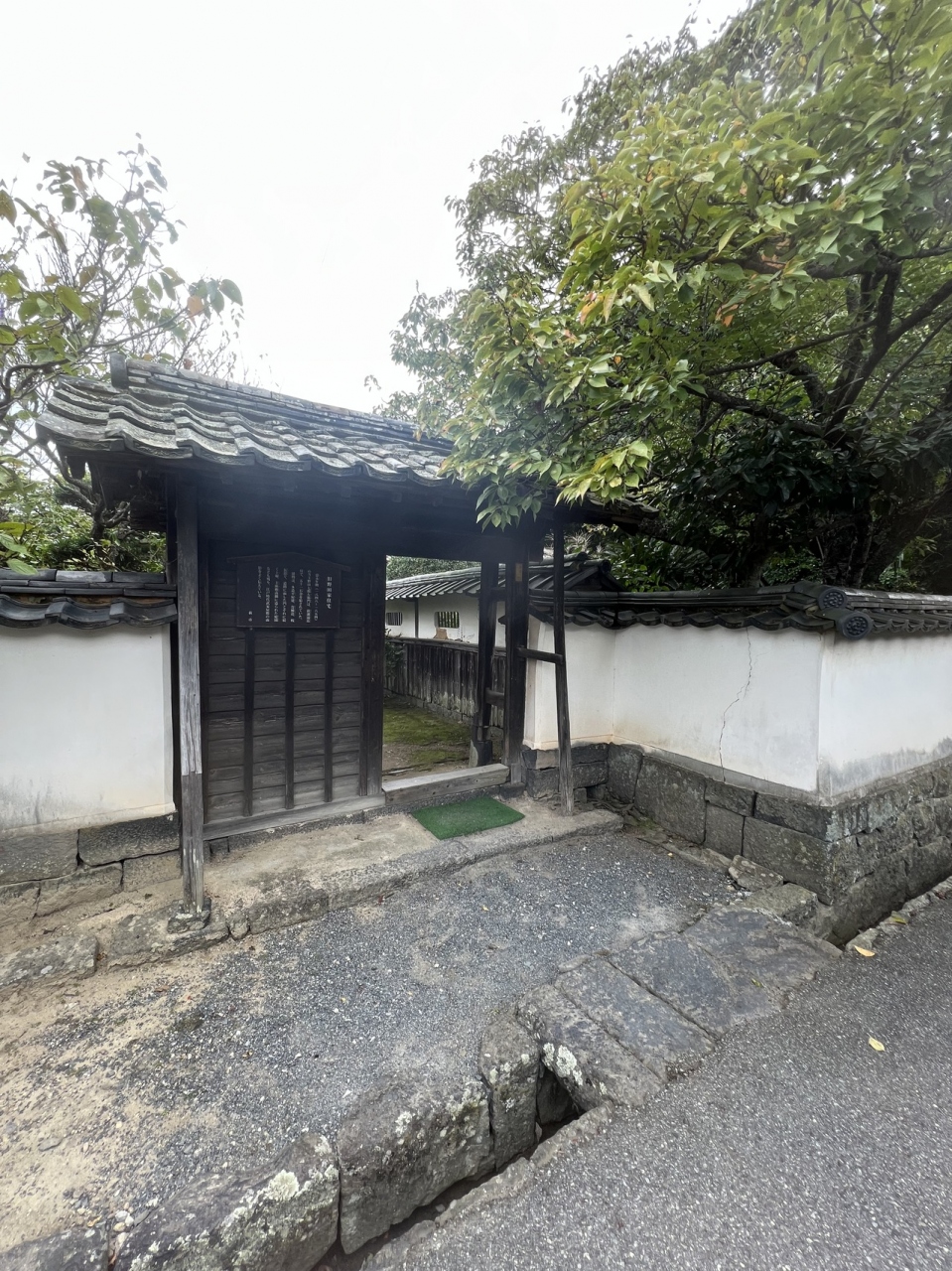 中央公園の駐車場から、菊屋横町の方へ歩いて行くときに見つけました。門と白壁のある武家屋敷の構えで、江戸時代の建物が大切に残されていることに感動しました。門は開いていましたが、今も住まわれているようなので門内には入りませんでした。