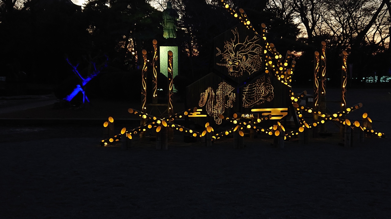12月下旬の平日夕方に訪問しました。そして、「家康公生誕2023 岡崎城天守閣&大手門プロジェクションマッピング」と、「イルミネーション」を堪能しました。特に、家康公生誕日近くの数日間限定のプロジェクションマッピングは、公園内の大手門と岡崎城で実施されましたが、どちらも、幻想的な美しさで、立ち去るのが惜しいな、と感じる位で、大満足でした。