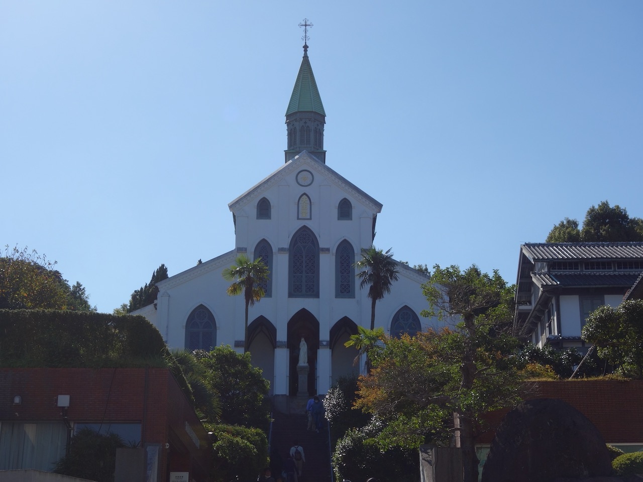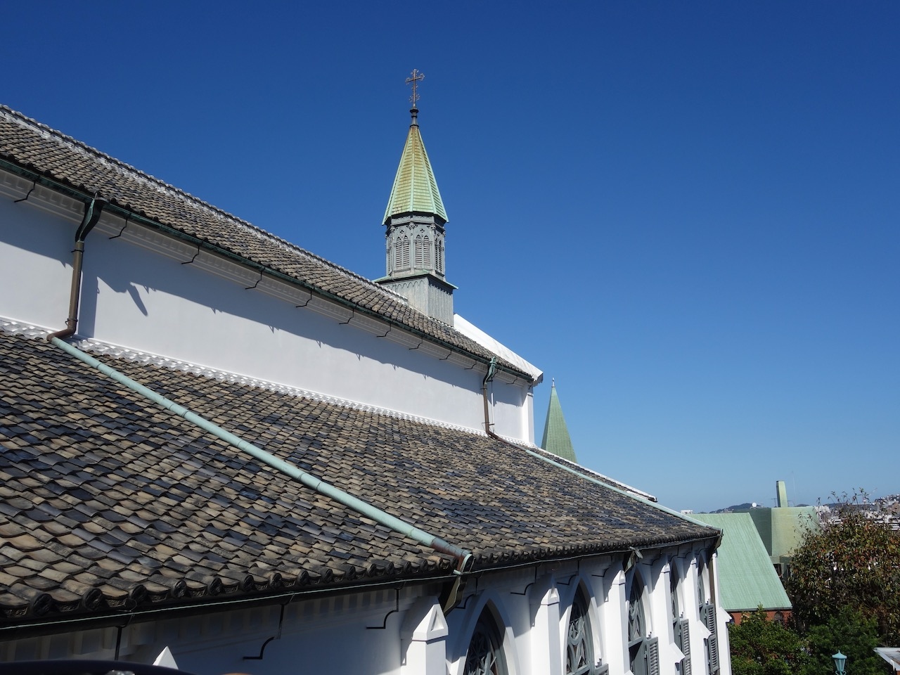 グラバー坂を登ったところで正面に見える尖塔のある教会。そのほっそりした外観がいかにも長崎のエキゾチックな街並みの象徴のよう。日本で一番古いカトリック教会です。