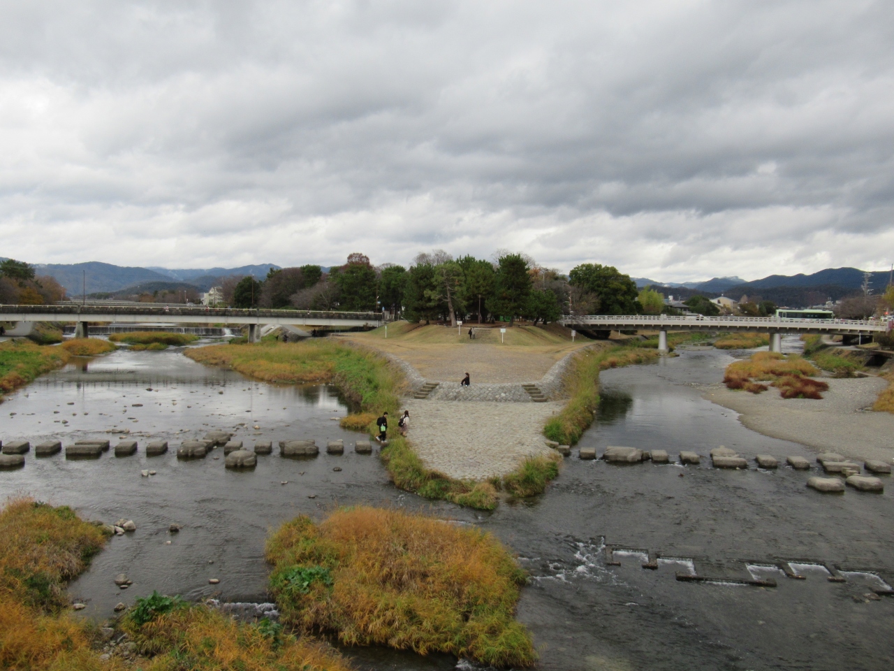 鴨川は、賀茂大橋のすぐ上流で賀茂川と高野川が合流して鴨川となります。