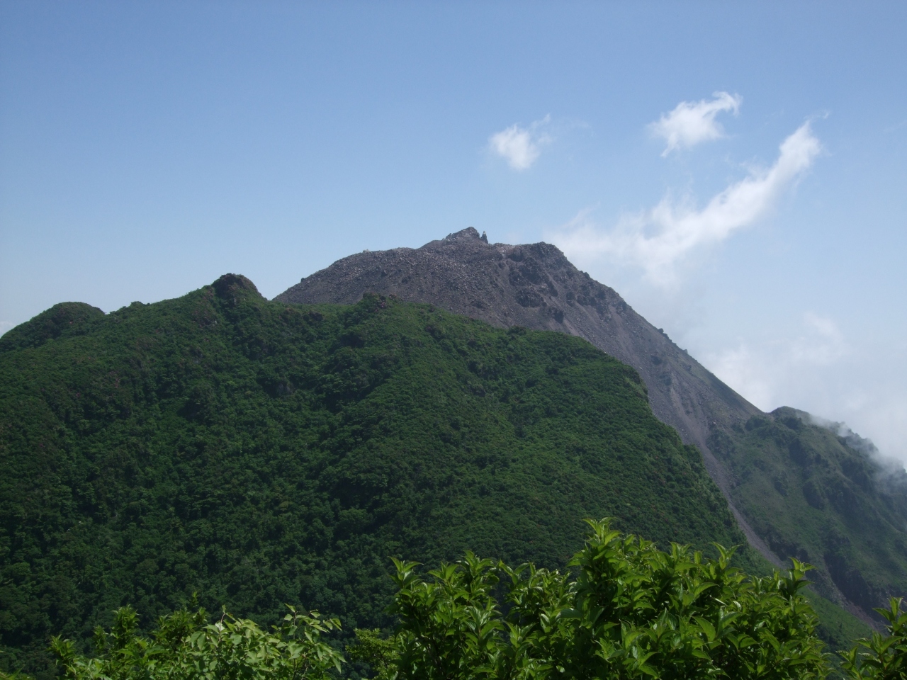 普賢岳は、島原半島中央部にそびえる20以上の山々の総称、雲仙岳の主峰。標高は1,359m。爆発によって多くの人が亡くなったりして怖い山のイメージがありますが、妙見岳駅から少し上がった展望所からは割と簡単に目の前にその姿が見えました。普賢岳の奥が平成新山。平成新山の方が1,486mと高いです。