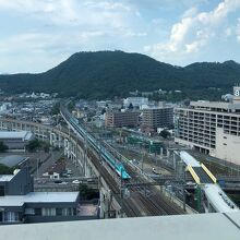 福島市の小高い山です。新幹線に乗っていると、福島駅を発車して、すぐにトンネルに入ります。これが信夫山です。写真は、福島駅西口のコラッセ福島展望フロアから撮りました。市街地山があるのが分かります。桜の名所としても知られています。