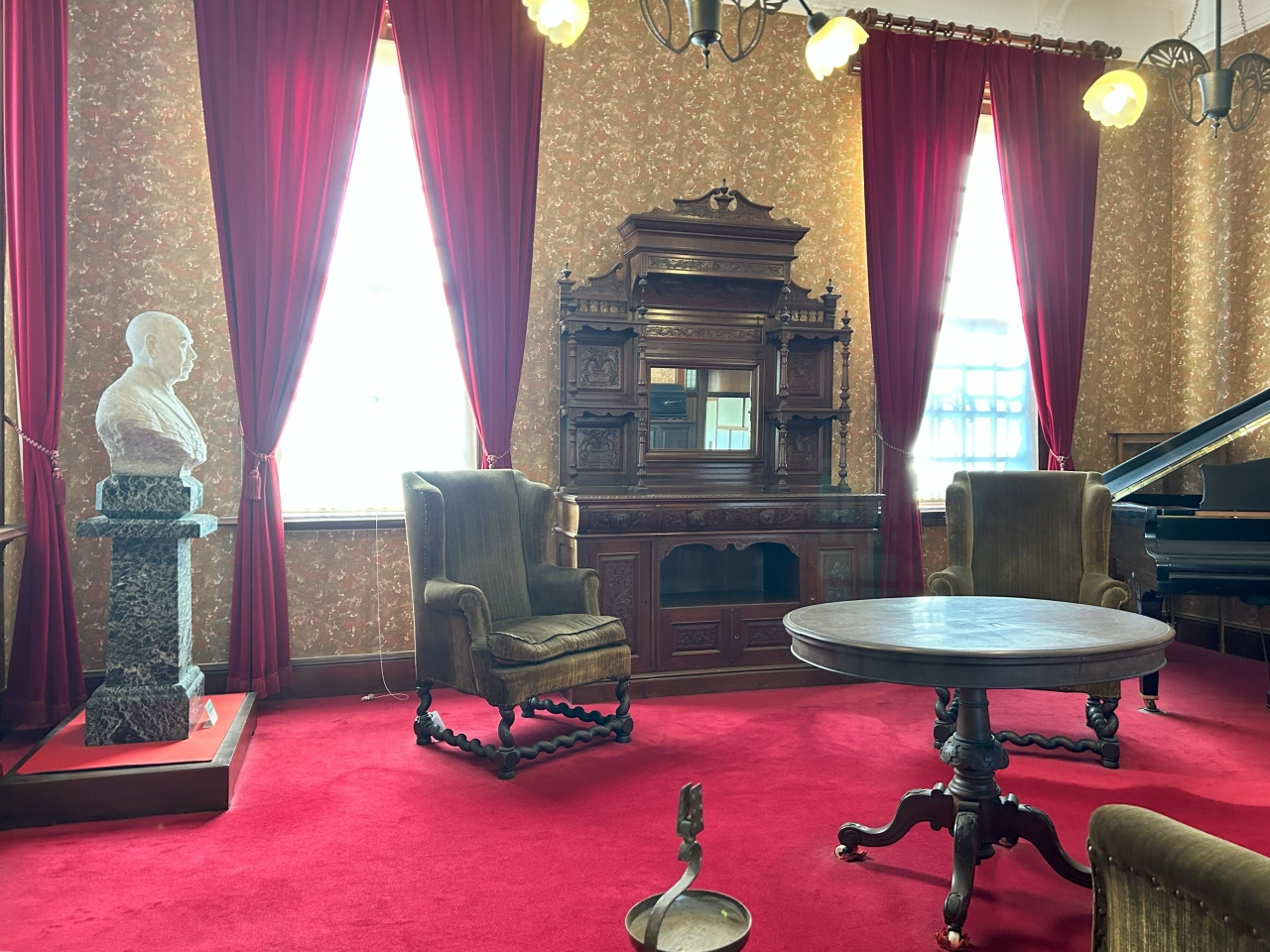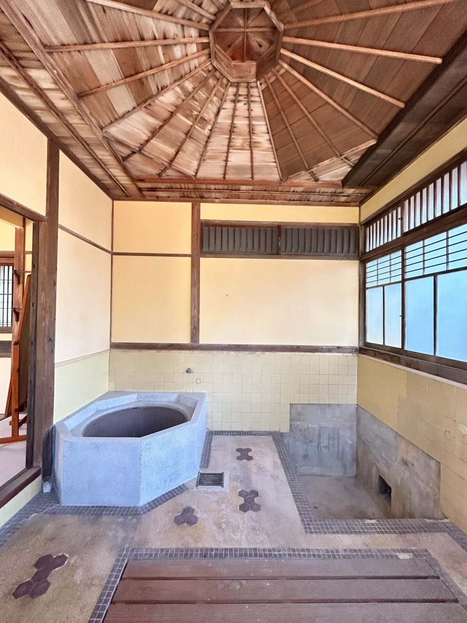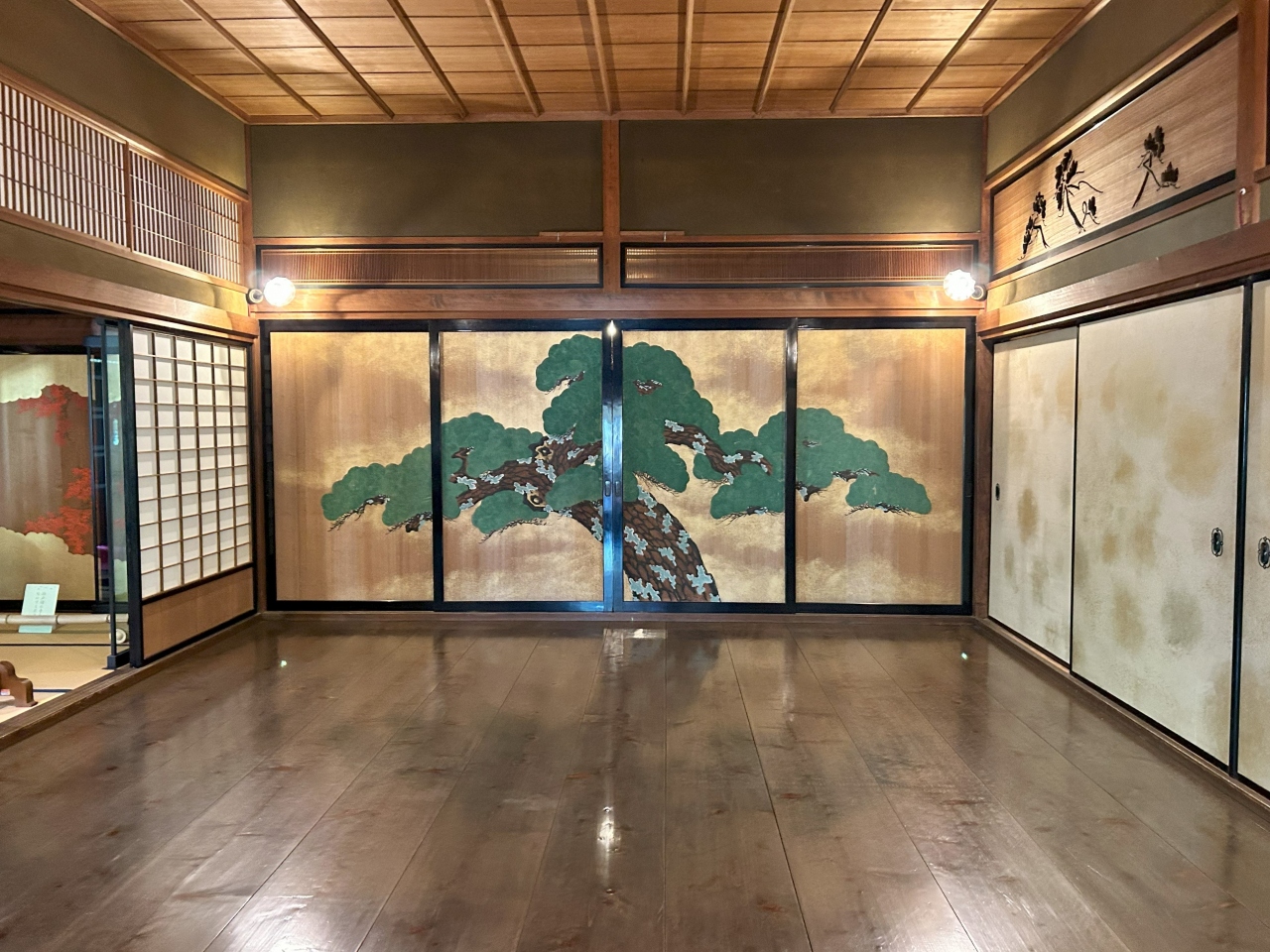 国指定重要文化財の邸宅です。近隣に専用駐車場があり入館者は1時間無料でした。入館料は一般(15歳以上)1人520円です。明治時代後期頃の木造建築で、杵島(きしま)炭鉱の経営者であった高取伊好(これよし)氏の邸宅でした。和風の邸宅ですが洋館も併設しています。近代和風建築の特色をよく残し、台風で被害を受け廃屋になりそうだったところを、地元の旅館の女将たちが「こりゃいかん!」とばかりに保存に動いたそうです。この邸宅で最も特徴的なのは、邸内の大広間に能舞台があるという独特の造りで、これはかなり珍しいそうです。確かに見事な舞台ではありますが、係員の方の説明の圧がちょっと強めで、「1月にはなんと野村萬斎が来るんですぅ~」とかなり自慢げでした。