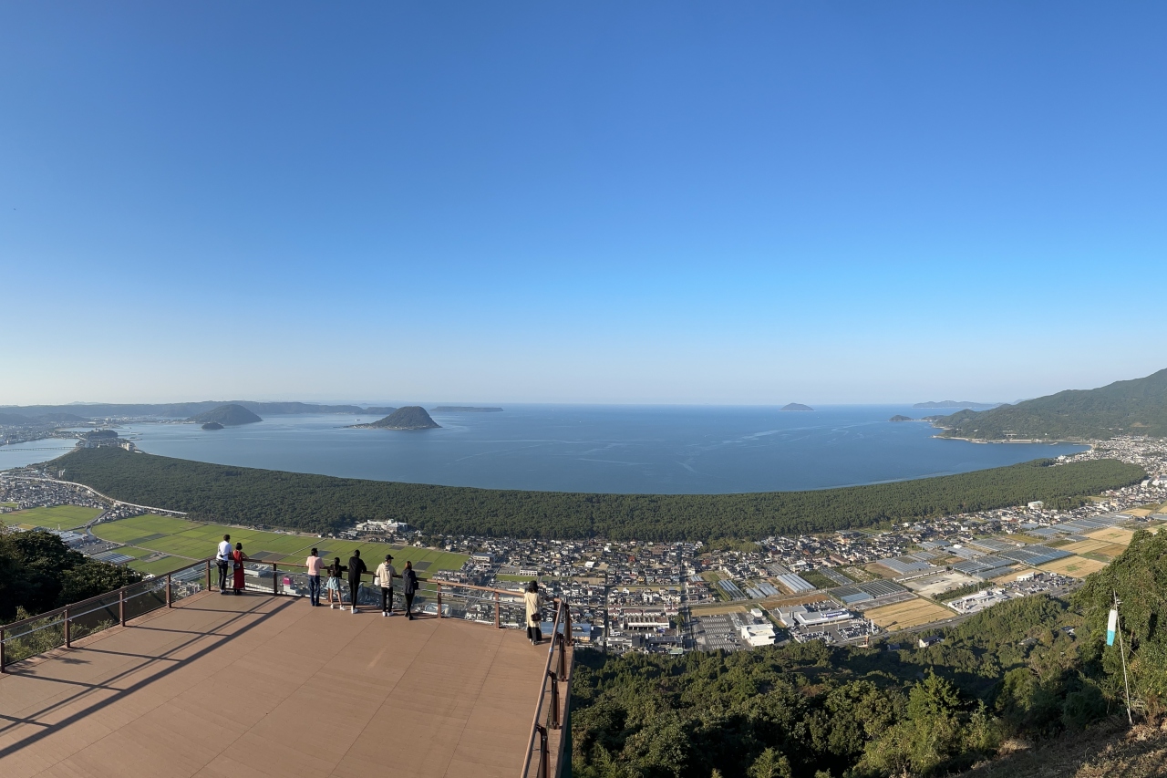 唐津湾沿いに、虹の弧のように連なる松原です。日本三大松原の一つとされ国の特別名勝です。唐津藩初代藩主、寺沢志摩守広高が防風・防潮林として植林したのが始まりで、全長約4.5km、幅約500mにわたって続く松は約100万本なのだとか。松原の中も良いですが、鏡山から見る全景が素晴らしいのでおすすめです。