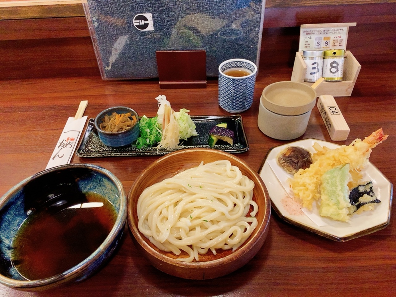 このお店の1番の特徴は、芸術的に盛られた珍しい薬味のお皿。 うどんを食べる際、薬味を一切使わない私にとっては、何のためにこのお店に行ったんだろう?!って感じではありましたが(汗)、うどんはとても美味しかったです。