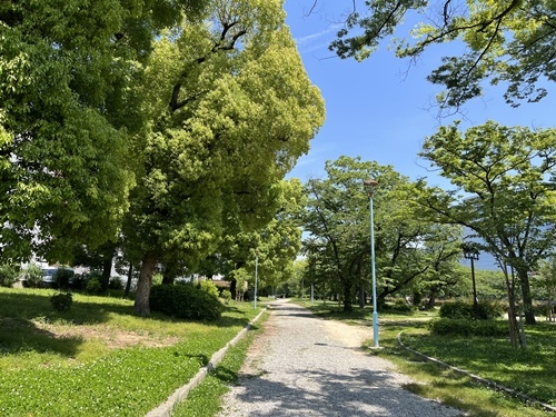 大川北岸沿いにある東西に長い公園です。天満橋と天神橋の間にあります。広い園内にはテニスコートがありますが、自分はそれよりいくつもの記念碑「天満青物市場跡の碑」「天満の子守歌歌碑」「淀川三十石船舟唄歌碑」「将基島粗朶水制跡碑」があったり、旧町名の継承碑があったり、かつてをしのばせるモニュメントが多いことに興味を持ちました。大川沿いの桜の名所のひとつでもあります。