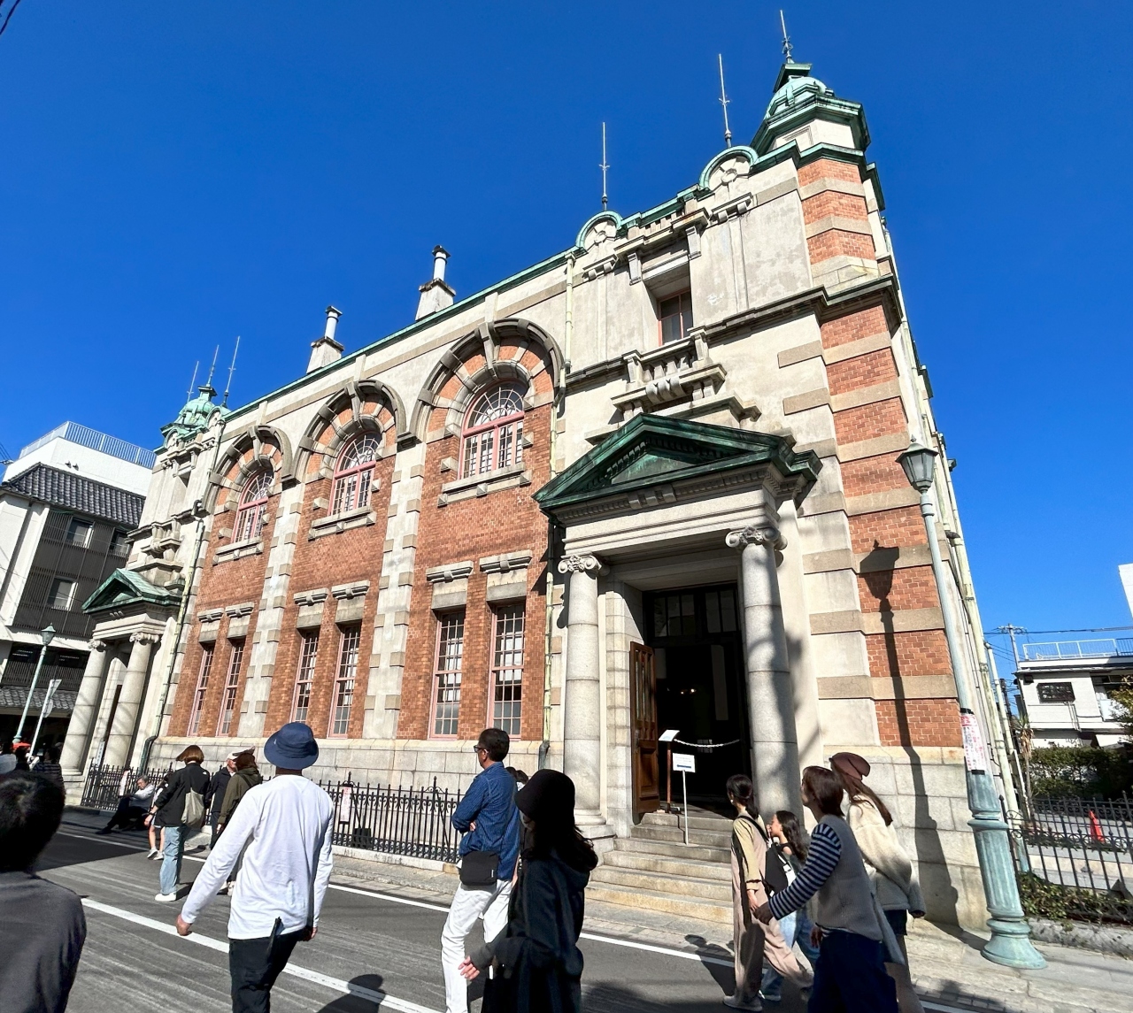 唐津出身の建築家・辰野金吾氏が監修、赤煉瓦に白い花崗岩の外観は見事
