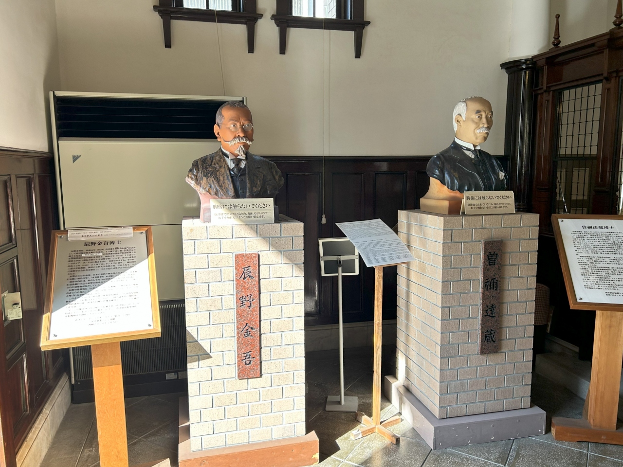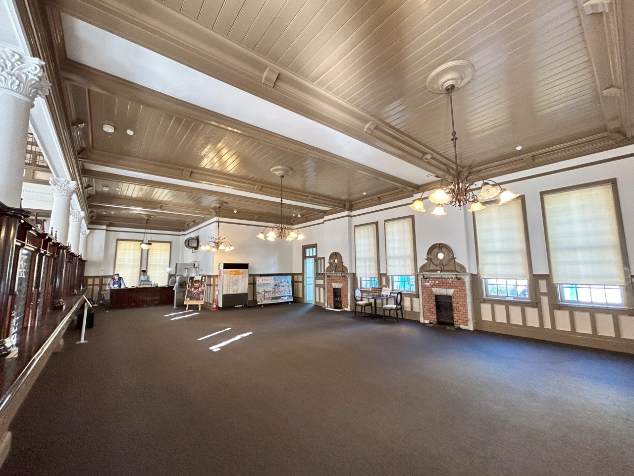 明治45年(1912年)に建てられた煉瓦造で、設計は清水組の田中實氏、そして田中氏の恩師である唐津出身の建築家・辰野金吾氏が監修したとされています。辰野氏は明治から大正にかけて活躍し、東京駅丸の内駅舎や日本銀行本店といった日本の主要な近代建築の設計を手掛けたことで知られています。赤煉瓦に白い花崗岩の外観も見事ですが、上品でアンティークな内部も良かったです。