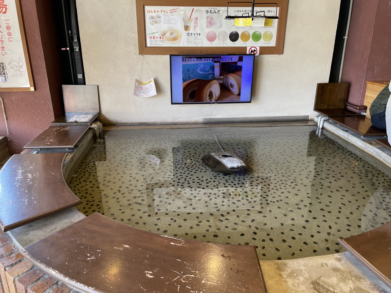 下呂温泉街散策の中心地・白鷺橋の前にある足湯と温玉ソフトのお店です。温玉ソフトは下呂温泉で作った温泉卵をソフトクリームにトッピングしたもので下呂温泉の名物になっています。今回、冬の旅行で食べてみましたが夏にもう一度食べてみようと思いました。その他ではプリンを下呂温泉で湯煎したほんわかプリンもあります。冬はこちらの方が良かったですね。私が行った時には足湯が混雑していて入れませんでした。ほんとうは、足湯に入りながら温玉ソフトを食べたかったですね。