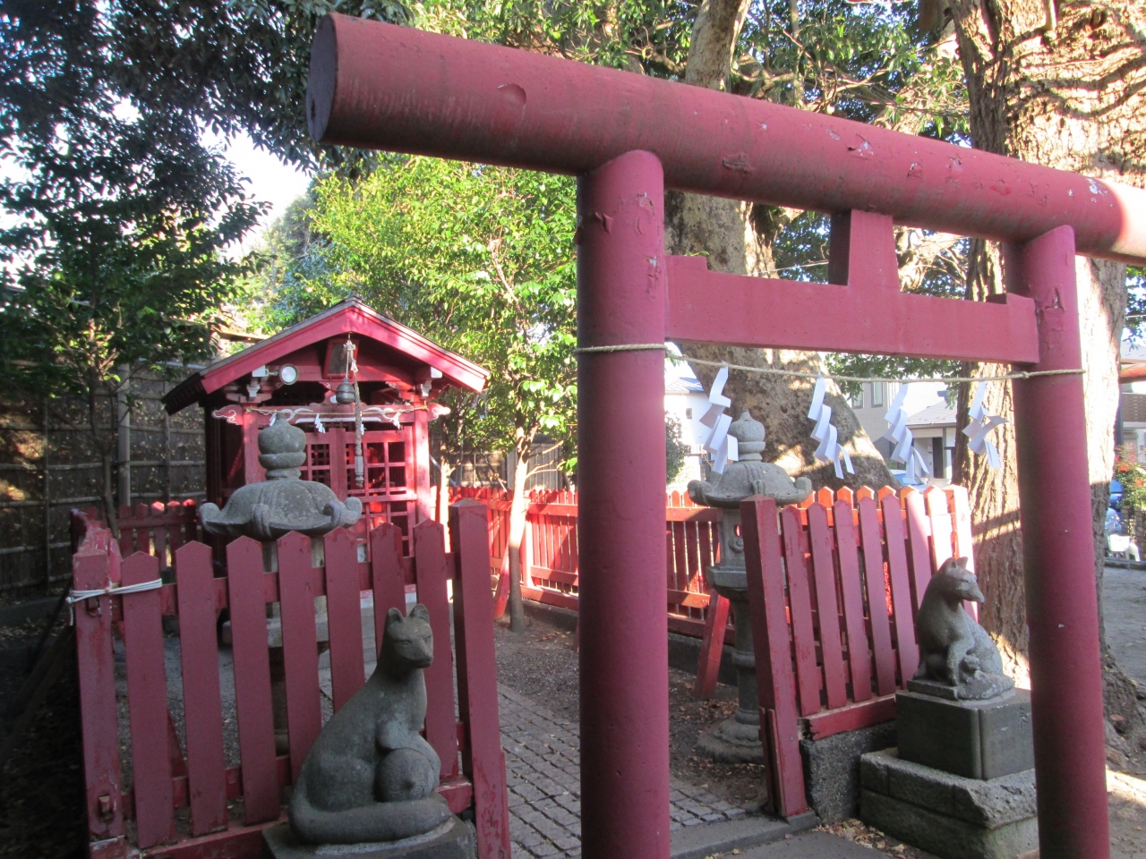 鶴岡八幡宮の南東角(境外)にあります。築山稲荷社という名の方が有名です。創建は不詳、1857年に正一位稲荷大明神の神号を与えられる。御祭神は倉稲魂神です。鳥居と社殿の神社です。かっては鶴岡八幡宮の境内社であったそうですが、今は独立した神社です。八幡宮からは直接入れず、一旦外に出てから入るしかありません。鳥居と社殿だけのこじんまりした神社です。八幡宮の人出の多さに比べ、参拝者は私一人でした