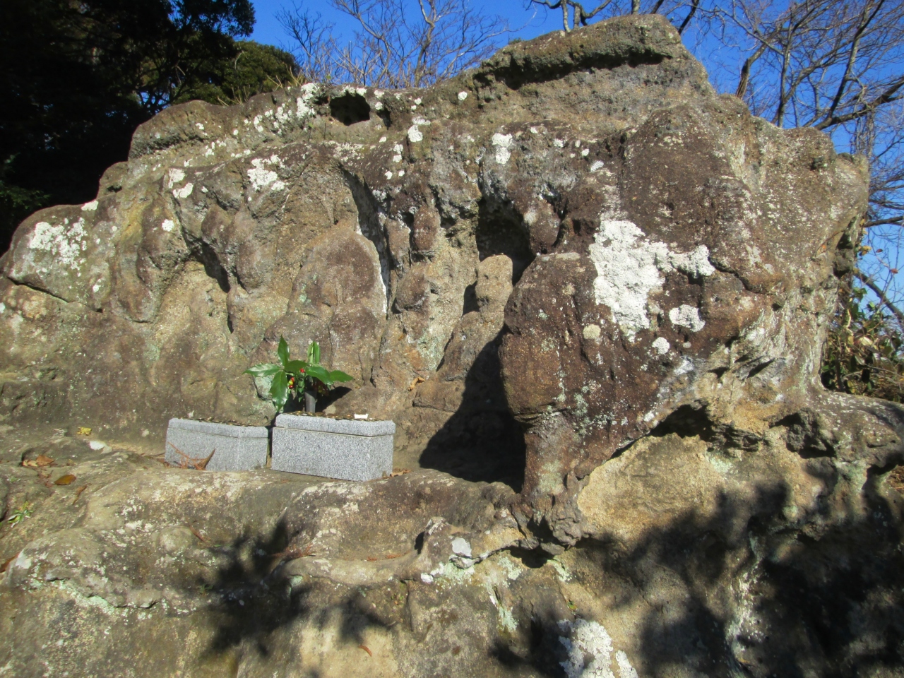天園ハイキングコースを歩いている途中十王岩展望台に寄りました。神奈川景勝五十選に指定されている絶好のビューポイントで、若宮大路、相模湾、横浜方面が見られます。展望も良いのですが、展望台には、大きいまたかなり風化の進んだ岩があり、岩には三体の仏像(如意輪観音、血盆地蔵、閻魔大王)が彫られています。説明版が無いので詳細は分かりませんが、かなり歴史を感じさせる仏像です。展望に気を取られていると見逃してしまいます