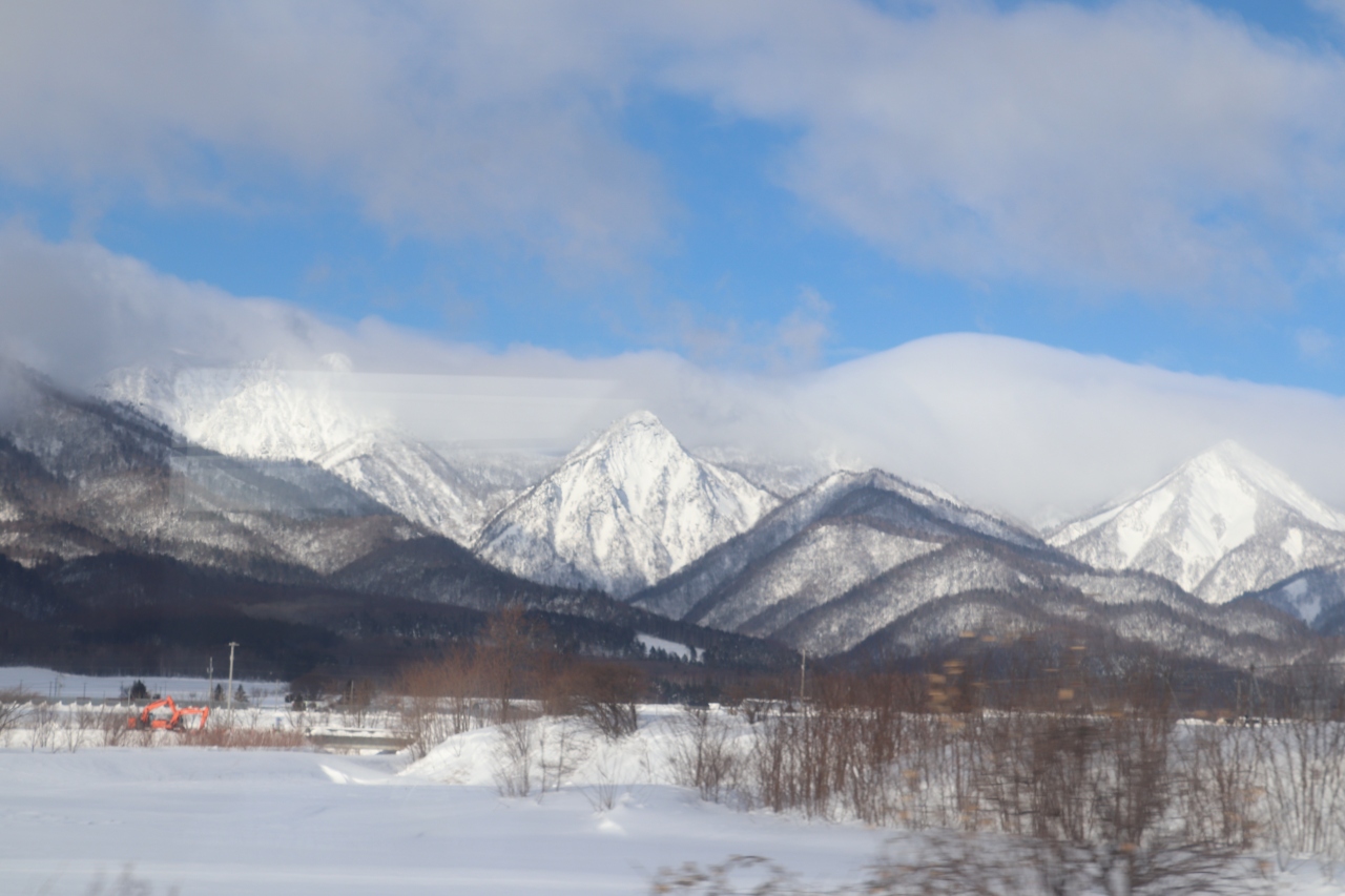 夕張山地の最高峰で標高1726メートルの山です。根室本線の車窓から眺めることができました。山部駅付近、新得方面に向かって右側、広々とした平野の先の山々の中、尖峰が特徴です。日本の二百名山のひとつでもあります。