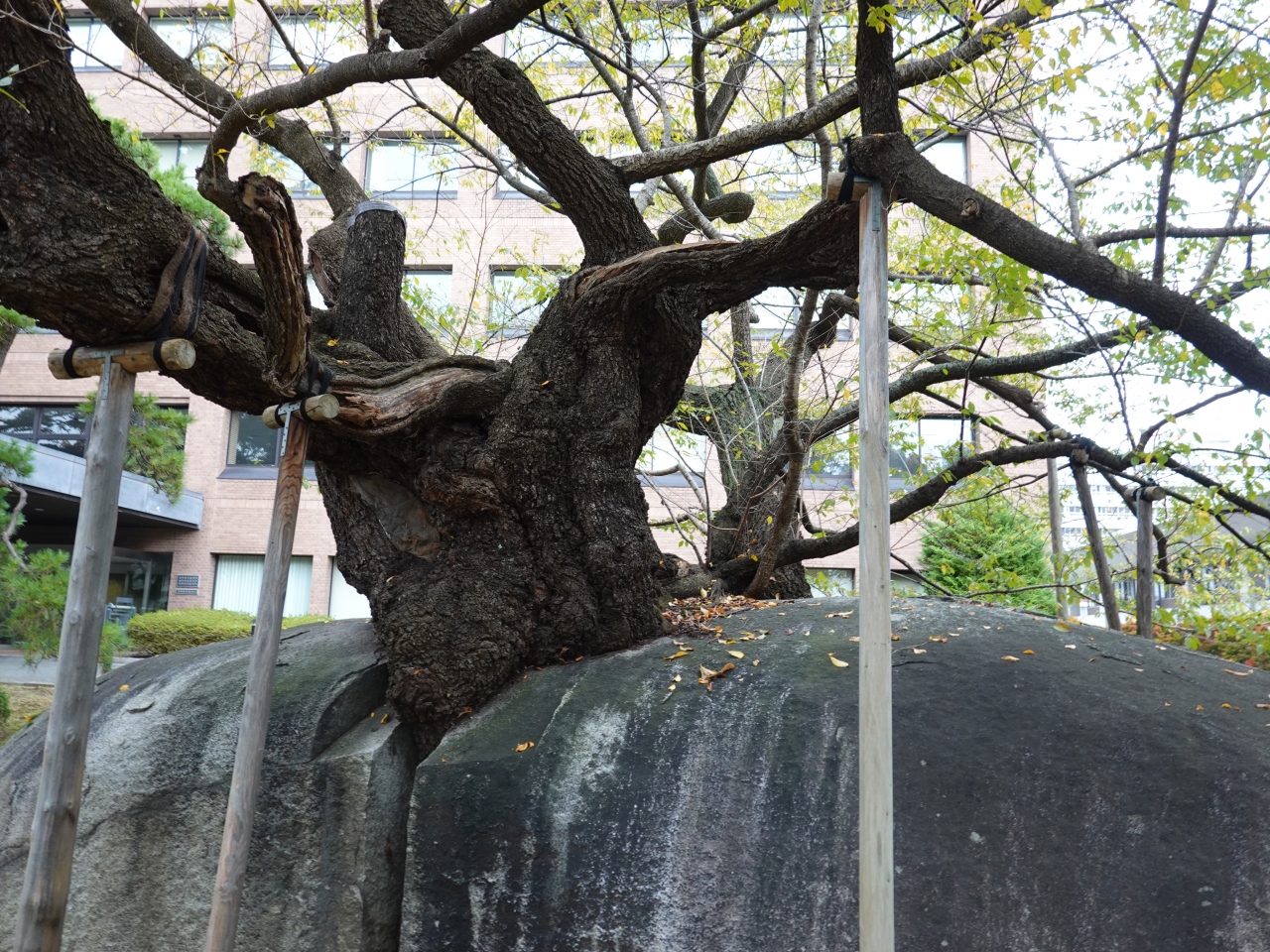 盛岡地方裁判所の敷地内に「石割桜」があります。大きな花崗岩の割れ目からエドヒガンザクラの枝が伸びており、「生命力」の素晴らしさを感じさせる光景です。推定樹齢は360年以上とされ、現在も石の割れ目は徐々に広がっているというのが凄いです。