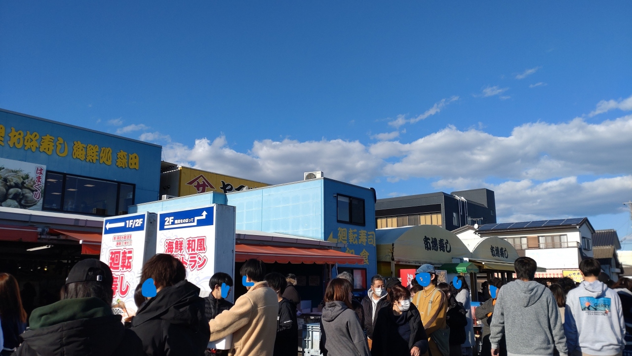 1月末の土曜日、お昼過ぎでしたがお天気も良く、暖かかったので市場は混雑してました。大きな北寄貝はお刺身用、タイムセールで安くなってたアサリは冷凍も出来るので購入。昼食時に保冷袋又は発泡スチロールの箱無料券貰ってたので、保冷袋に入れ持ち帰ることが出来ました。
