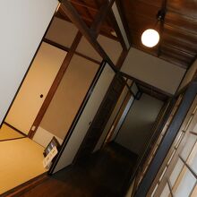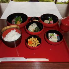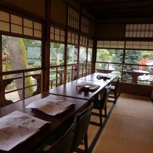 加茂川と高野川のちょうど三角地帯のところにあります。食事は建物の2階、庭を見渡せる広間でいただきました。精進料理の仕出し料理店「泉仙」という店から運ばれてきます。朝からとても豊かな気持ちになれます。