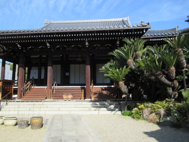 三条通りはJR奈良駅から近鉄奈良駅方向に延び春日大社へと至る通りで途中レストランやcafe、お土産屋さんなどが並ぶ商店街です。しかしお店やさんだけではありませんよ途中には「開化天皇陵」そしてその先にはこの「浄教寺」があります。浄教寺は、浄土真宗本願寺派の寺院で、親鸞聖人の弟子となった行延法師の開基になります。寛元2年(1244)に河内国で開創され慶長8年(1603)に現在地に移ってきたとのことです。境内にはいると本堂前にあるデッカイ「ソテツ」が目に付きます。樹齢300年以上で一本の株から25本もの幹が出ているそうで奈良県指定保護樹木に指定されています。また左には枝垂れ桜があり春には満開になるでしょう。見ごたえある寺院ですよ是非立ち寄ってくださいね。