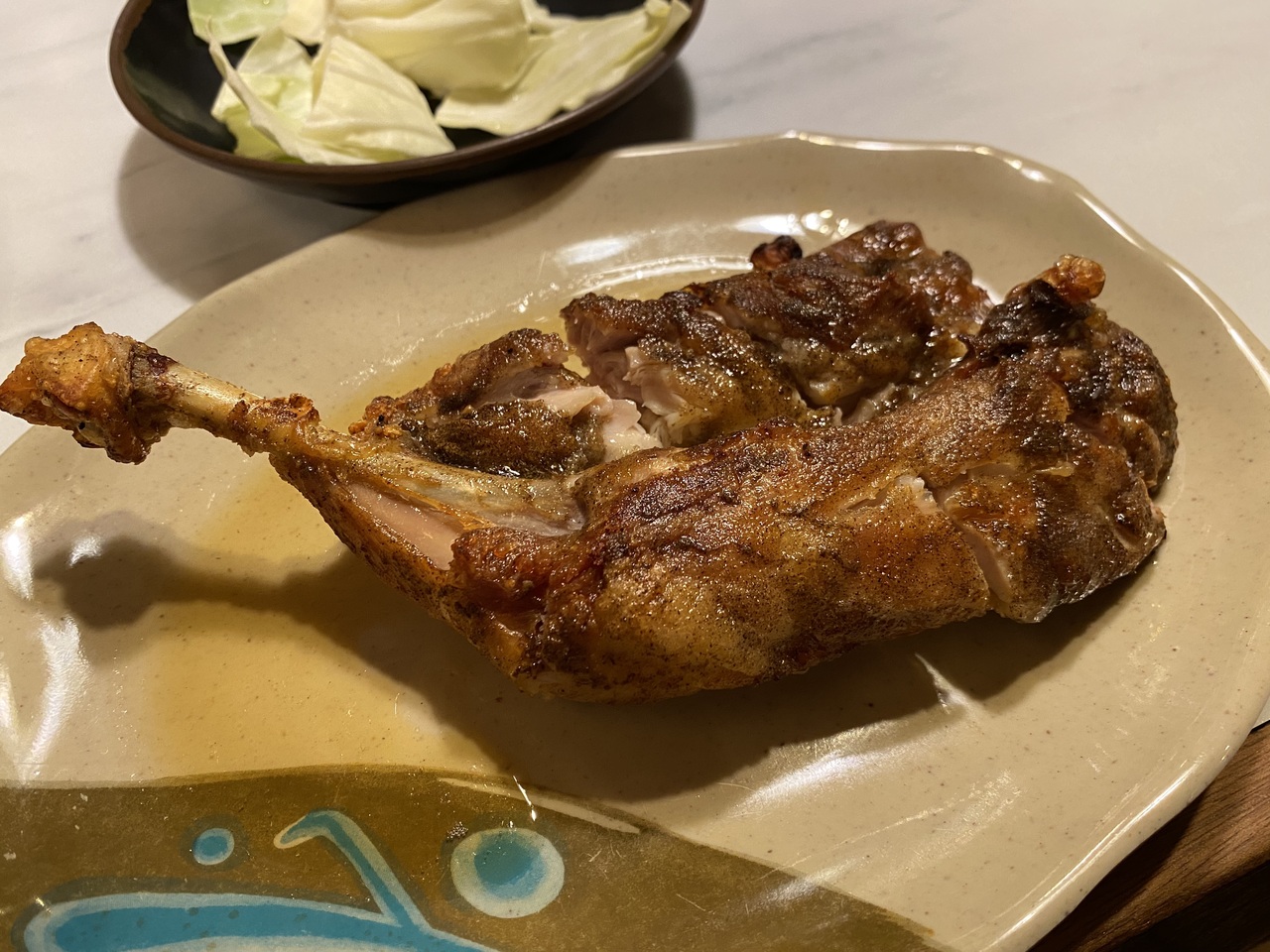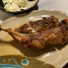 金曜日の開店17時ちょっと前に行ったら3組ほど既に待っていました。1人だったのでカウンターに案内され、骨付鳥のもも、生ビール、ほうれん草の胡麻和え、麻婆春雨を注文。骨付鳥ができるまで20分ほどかかるとのことだったので、2品を食べながらビールを飲んでゆっくりしていました。骨付鳥が運ばれてきて、付け合わせにキャベツもありました。皮はパリパリ、こしょうなどのスパイスがついていて、お肉はジューシーで柔らか。とってもおいしかったです。お店の方も気持ち良い接客でいいお店でした。