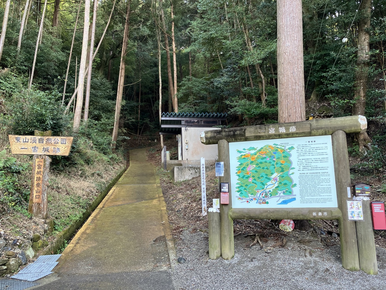 バス停から登山道はすぐです。杖がありますので是非お借りしましょう。