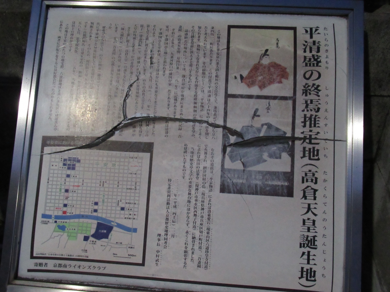 この付近で平清盛は六十四年の生涯を閉じたと考えられています。