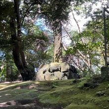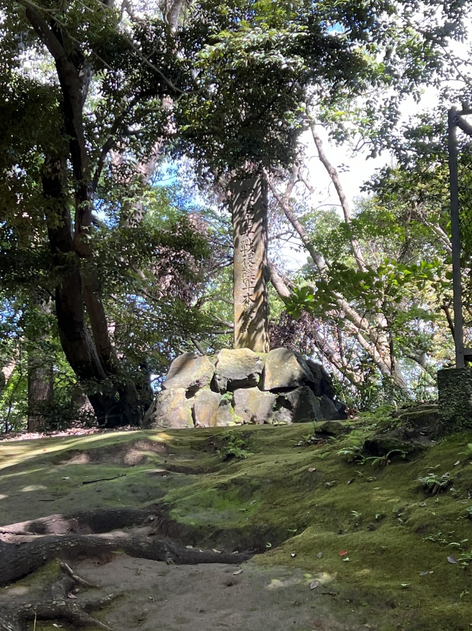 城山ドン広場の奥の方にあります。しかも、昔の砦の土塁跡と思われるところに建っているので、広場から少し上った場所に位置しています。建てられた当初はそうではなかったのかもしれませんが、今では木々の後ろの隠れているような印象さえ受けました。説明板などもありませんでした。