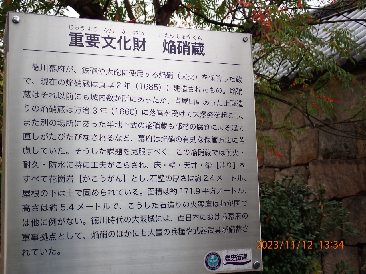 有料ですが、11月だったので見どころは大坂城焔硝蔵だけでした
