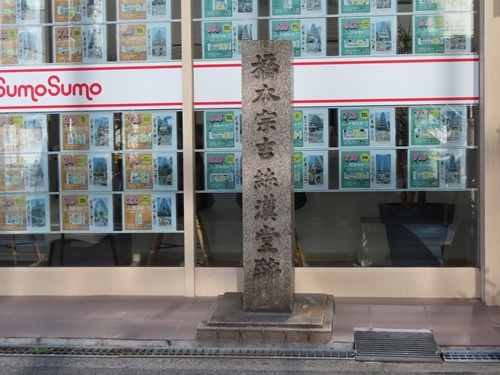 福沢諭吉の師匠の師匠とも言える人物のようです。安堂寺橋通と丼池筋の交差点・東南角。不動産仲介ショップの西側に石碑がありました。