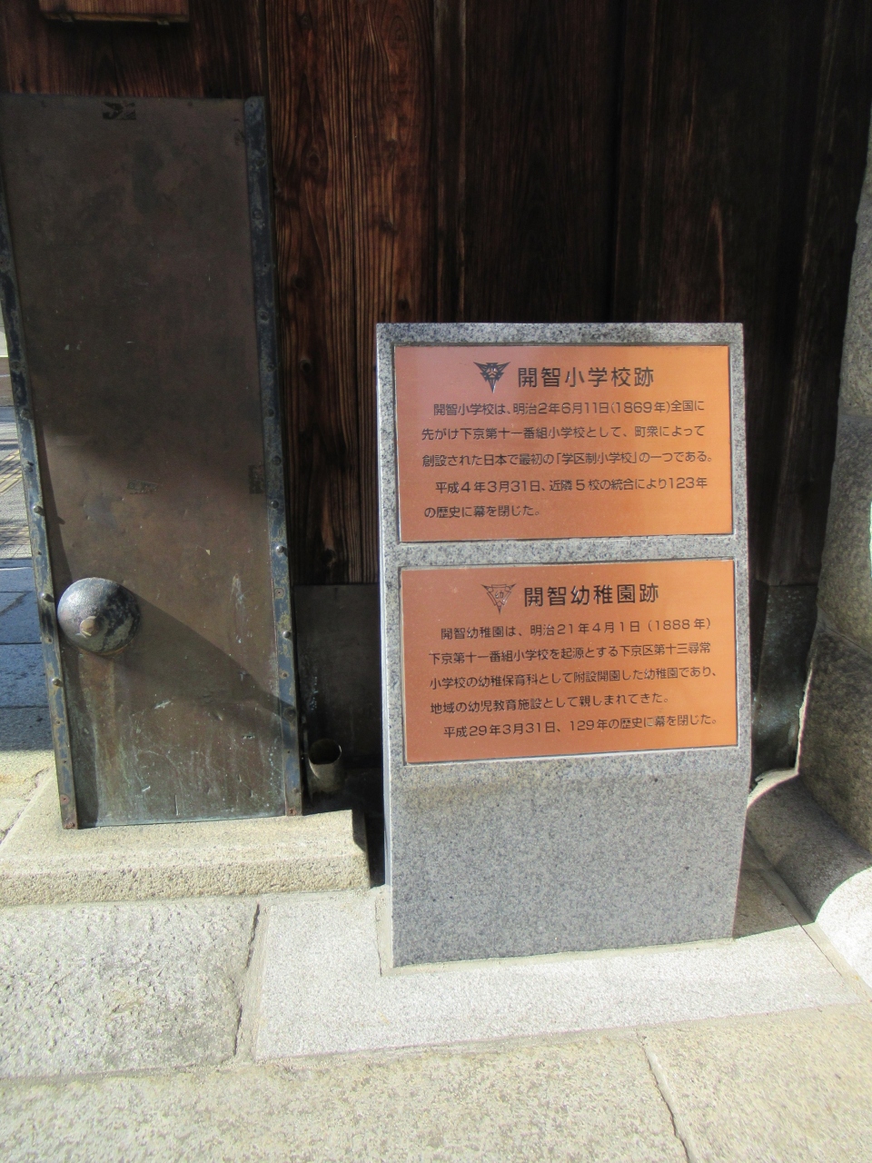 現在の場所は、明治2年に下京第11番組小学校として開校した京都市立開智小学校でした。