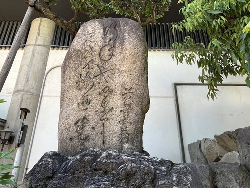 最晩年の句で梅の名所でもある大阪天満宮にちなんで詠まれたようです。碑は境内を入って左手の小高い段の上にあります。江戸末期に建てられた石碑で当時から芭蕉の人気ぶりがうかがえます。