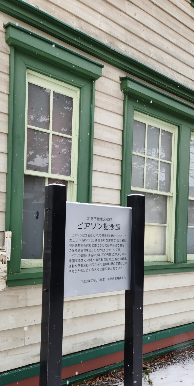 1914年ウイリアム・メレル・ヴォーリズ氏の設計(最北の建物だそうです)により建設され、アメリカ人宣教師のピアソン夫妻が15年間住んだ木造2階建ての建物です