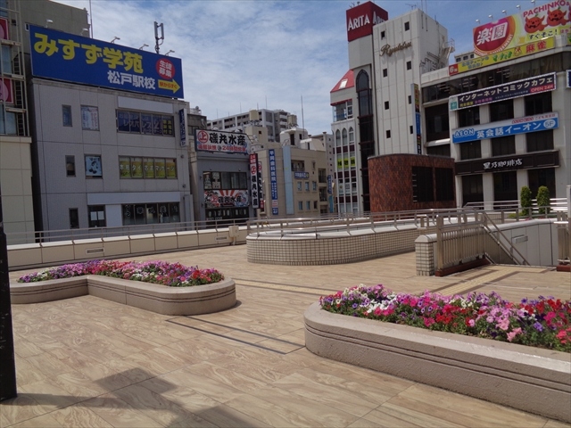 戸定邸に行くために利用しました.典型的な郊外の都市の駅舎という感じです.西口,東口どちらにもペデストリアンデッキがあり,快適でしたが,都会では余り見かけなくなった鳩が結構いて,分の汚れが目立っていました.駅前には飲食店の他,カラオケやマンガ喫茶などが揃っていて,それなりに快適に過ごせそうな駅でした.戸定邸は結構距離があり,余り便利ではありませんでした.