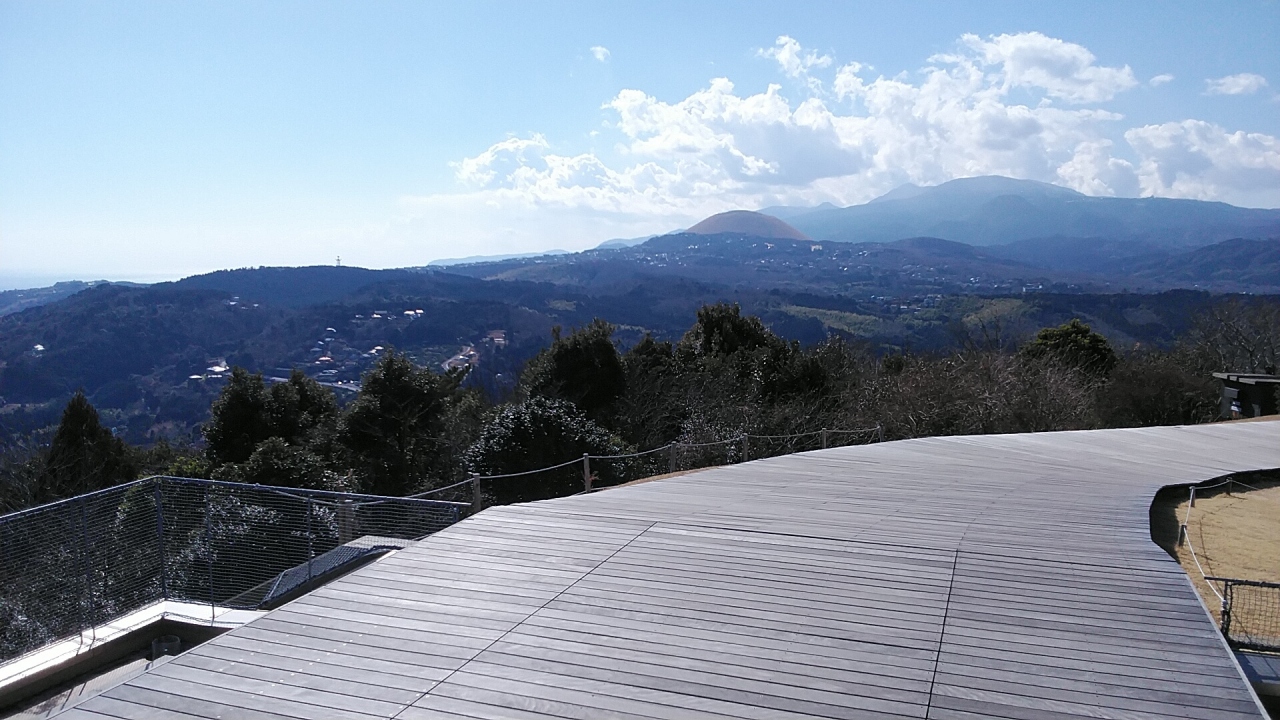 2月12日に訪問しましたが小室山公園には伊東小室桜が綺麗に咲いていて、リフトで上がれば標高321mの小室山リッジウオークMISORAがあります。2021年4月23日にリニューアルオープンされた施設なので綺麗で、歩きやすいウッドデッキの歩道からは360℃絶景が楽しめ、人気のSNSスポットのカフェもあります。富士山に大室山、初島~伊豆大島~利島まで綺麗に見えました。伊東駅からバスで行けるので天気の良い日にお勧めの施設です。