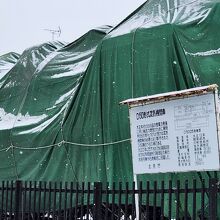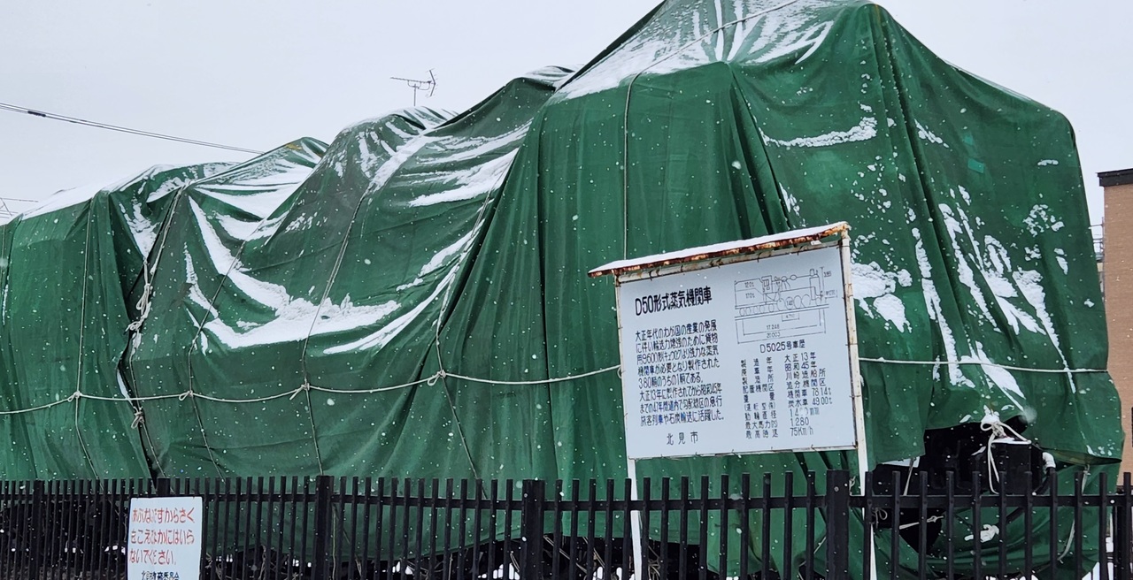 D50蒸気機関車1両が静態保存展示されていると聞き行ってみましたがこの時期(10月末から4月末まで)はカバーがかかっていてみることができませんでした