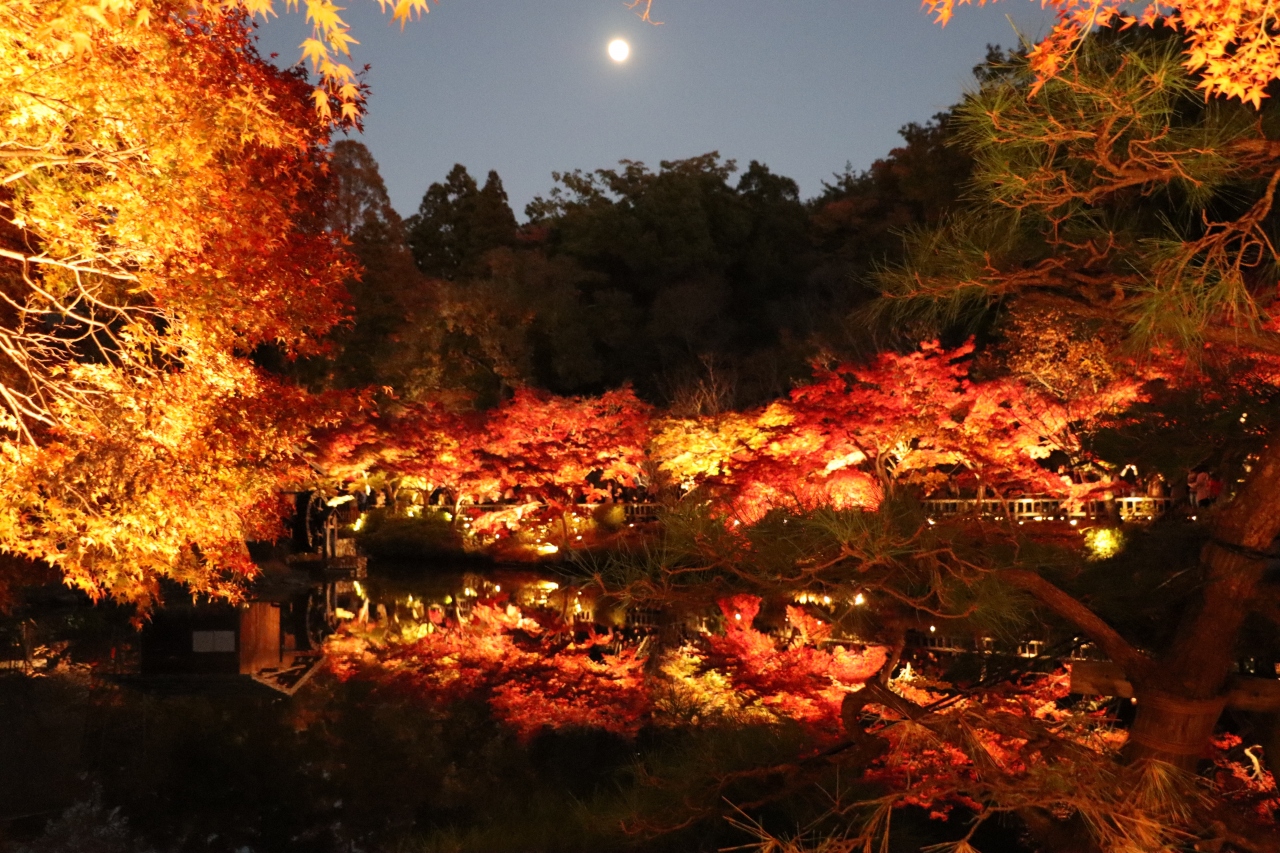 紅葉ライトアップの最終日でちょっと混雑していましたが、ライトアップされた紅葉が池に映り込んだ幻想的な風景が特に良かったです。