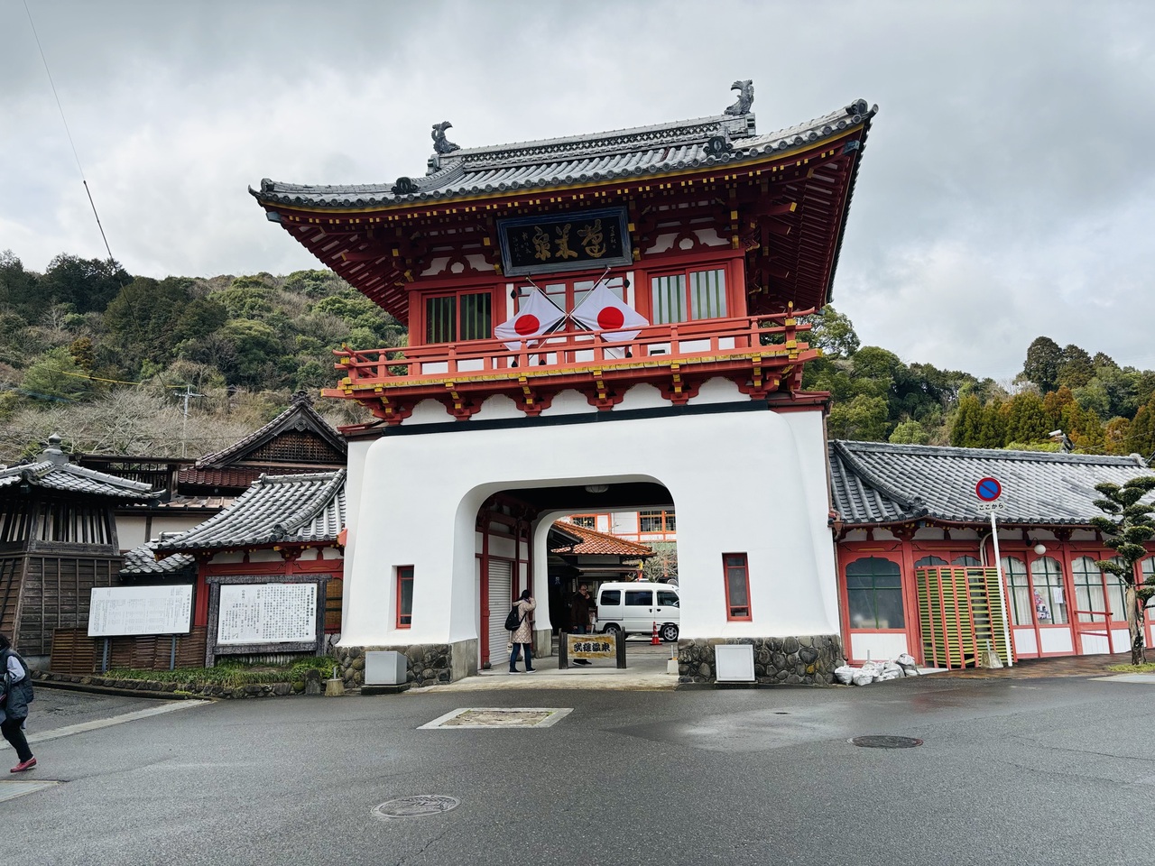 武雄温泉の入口に立つ朱塗りの楼門、竜宮を連想させる鮮やかな色彩と形です。
