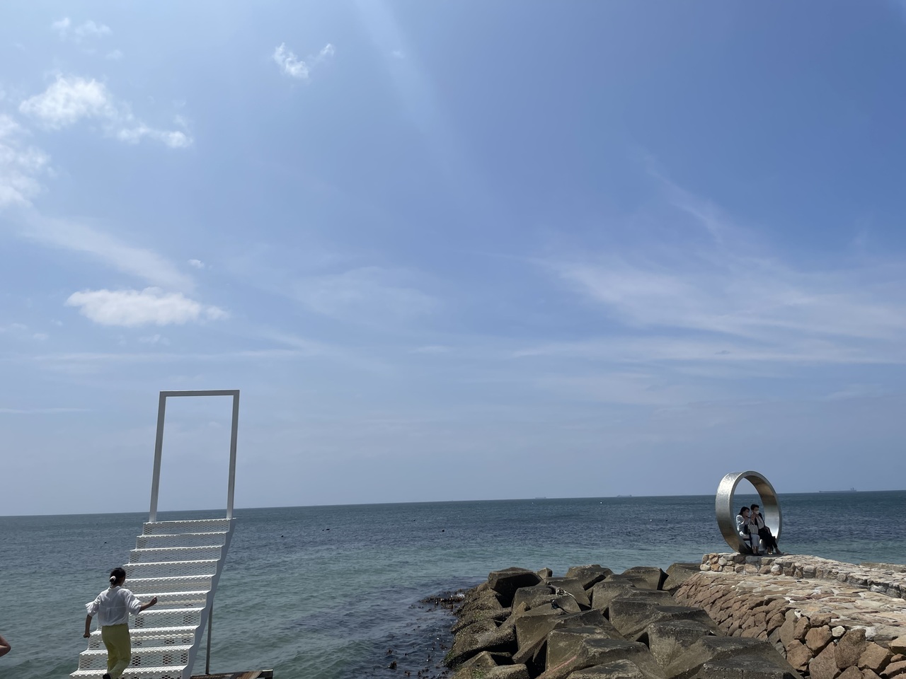 淡路島西海岸にあるのでリゾート気分を満喫しながら、目的はもちろんフワフワのパンケーキ。何度か前を通りましたが、平日でも行列しています。この日は朝方はあいにく風のお天気だったので(その後一気に晴れました)出足が遅かったのでしょうか。席も選べるほどでブランコも誰もいない程でした。食べ終わる頃には並んでいたのでタイミングが良かったのでしょう。海に飛び出ている階段も映えます。