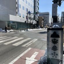 千歳橋から松本城公園までの南北に走る大通りです。距離にしたら500mもない短い通りです。通りの両側には歴代松本城主の家紋が飾られていて城下町の雰囲気を醸し出しています。冬期の夜間には街路樹がライトアップされます。寒さをこらえて夜間歩いてみるのもいいですよ。