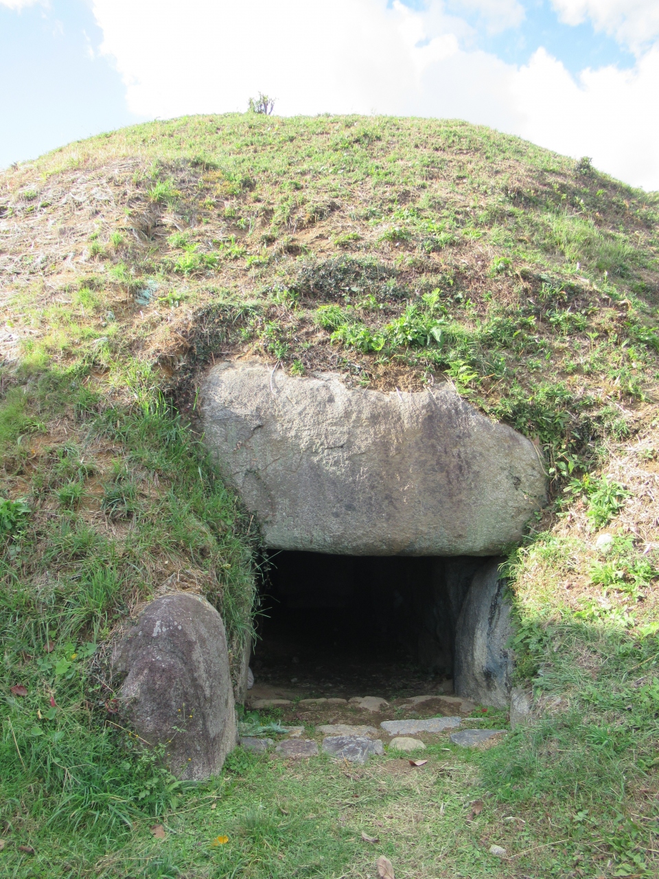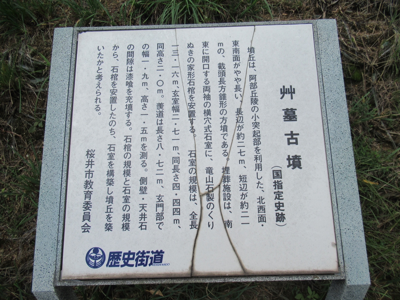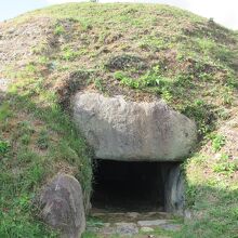 古墳を見つけるためには、民家の間の狭い私有地を通らなければならず、わかりやすい案内板や方向指示板もないことから、見つけるのが大変でした。民家の裏に残る方墳で、横穴式石室の中に入ることができます。誰の墓だったのかはわかりませんが、民家の裏に古墳が残っている姿から、1300年前に都があった奈良らしさが感じられました。
