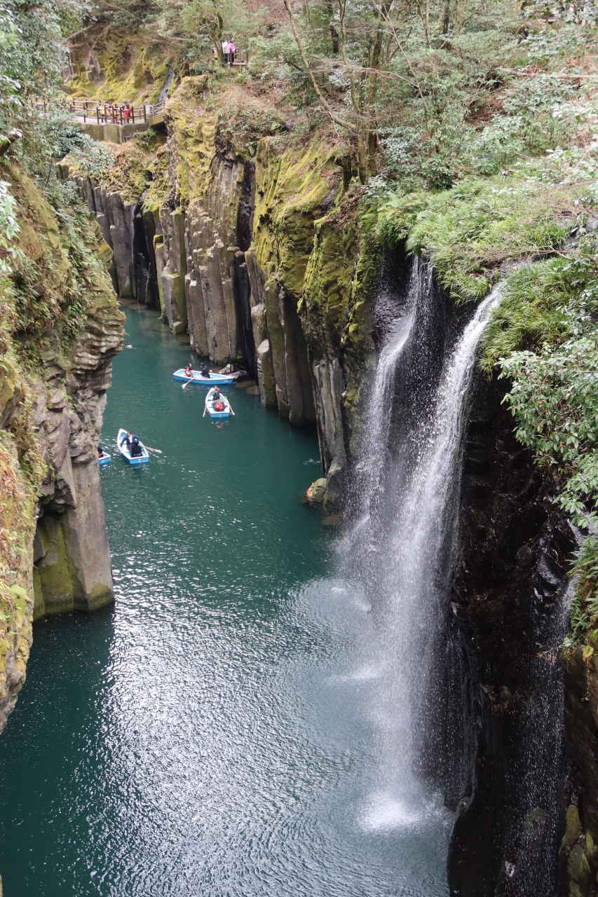 高千穂峡を流れる五ヶ瀬川の渓谷に流れ落ちる滝が真名井の滝です。真名井の滝が落ちる高千穂峡の風景は誰もが一度は見たことがある高千穂峡の景色。私はボートのは乗りませんでしたが、ボートから見上げるとどんな風に見えるのかが気になりました。