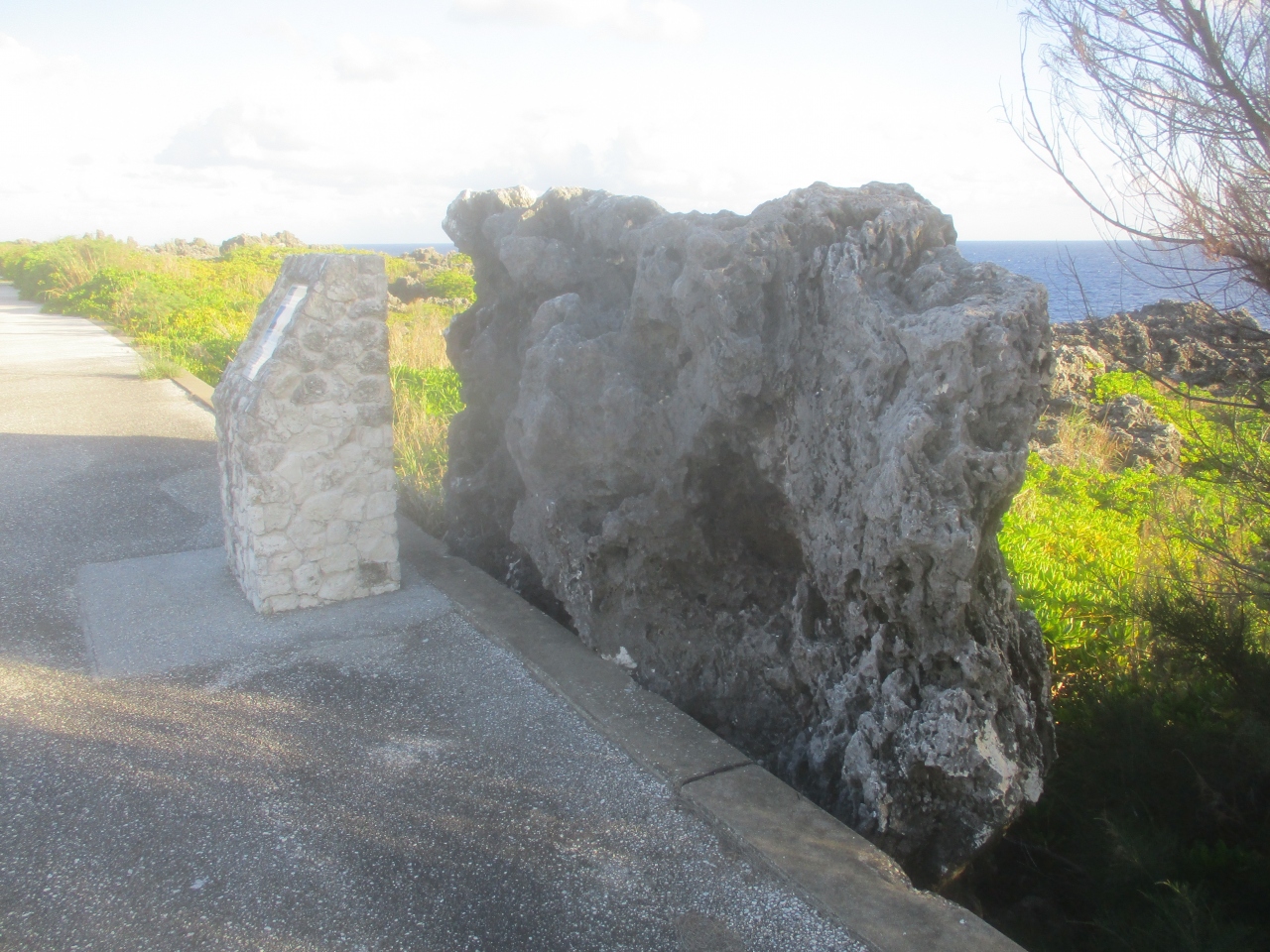 北大東島のメイン道路にある何でことのない岩が観光スポットになっているかというと、台風で岩がここまで飛ばされたからです。大東諸島は周りに雨風を防いでくれる陸地がないため、台風の被害を受けます。強い勢力のまま北大東島に上陸した台風がここまで岩を飛ばしたと考えると、台風の威力の凄さを感じました。