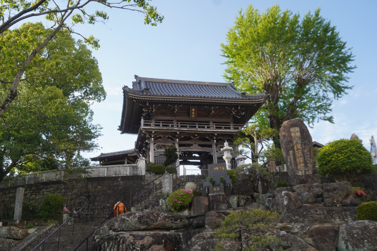 慶巌寺は、川を挟んで諫早公園の向かい側。小高い山の上に境内があって、遠くからでも山門の雄姿が目立っています。筑紫琴六段の曲発祥の地であり、龍造寺家晴が朝鮮出兵に着用した名珍作うこん威甲冑を所有していることでも知られます。
